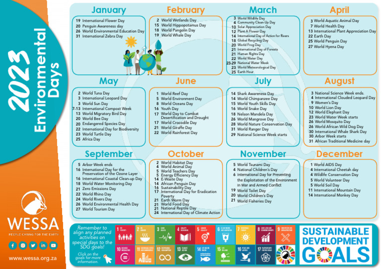 Environment Calendar 2025 . January does not have many days devoted to animals, however there are awareness days for birds and zebras. This united nations environment programme has the.